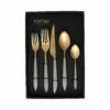 The contemporary matte handle found on the Ares Oro & Black Five-Piece Place Setting (Set of 4) provides perfect balance and weight for a luxury flatware experience. Oro, the brushed gold, finishes off the utensil in 18/10 stainless steel.