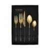The contemporary matte handle found on the Ares Oro & Light Gray Five-Piece Place Setting (Set of 4) provides perfect balance and weight for a luxury flatware experience. Oro, the brushed gold, finishes off the utensil in 18/10 stainless steel.