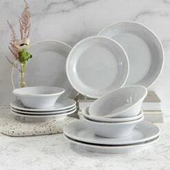 Every meal deserves a chic, playful setting. Whether it’s fine dining or your favorite takeout, there’s always a reason to gather with the Chroma 12-Piece Place Setting. The set includes 4 Dinner Plates, 4 Salad Plates, and 4 Cereal Bowls.