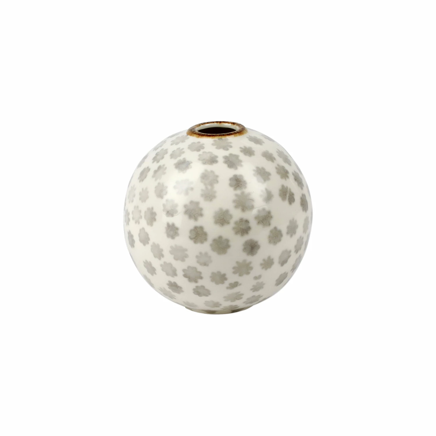 With soft colors, a playful pattern, and unique, sculptural shape, the Earth Flower Round Vase brings a subtle hint of sophisticated style to whatever floral arrangement you display.