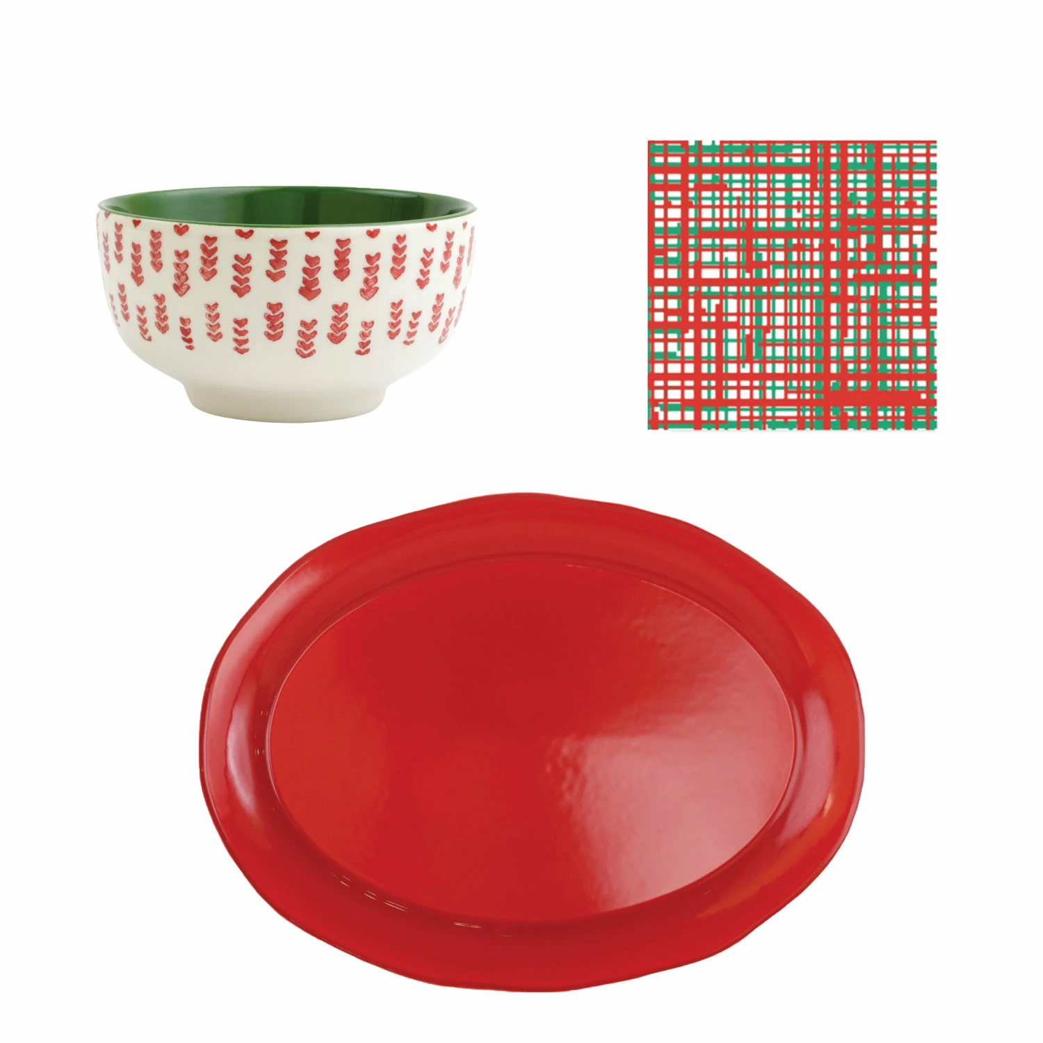Charm your guests with the Holiday 3-Piece Entertaining Set featuring Papersoft Napkins Cocktail Napkins and the viva by VIETRI Mistletoe Arrow Small Footed Serving Bowl and Chroma Red Oval Platter. Thoughtfully curated for the entertainer extraordinaire and intended to inspire you to create meaningful moments during the holiday season.