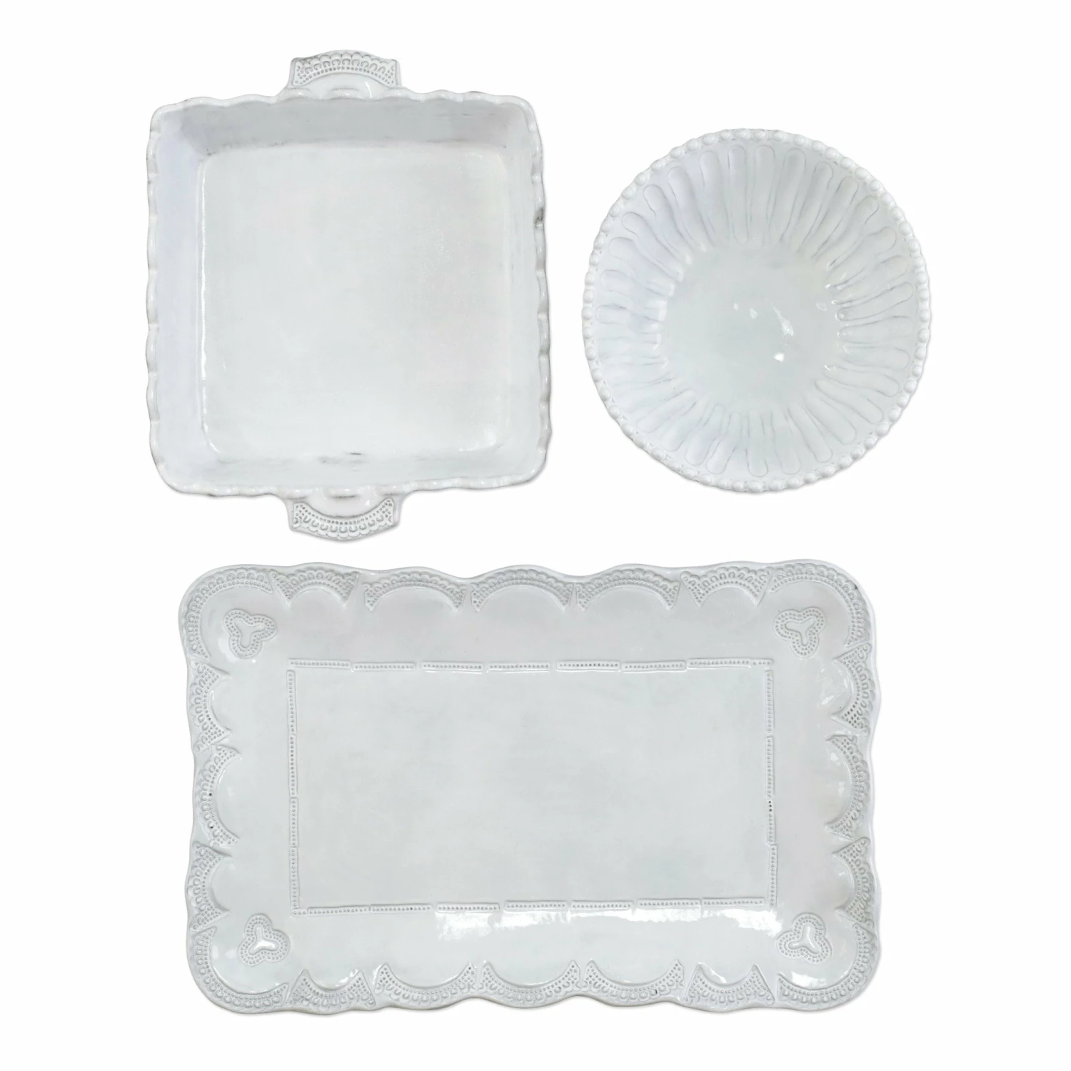 Italian for enchantment, Incanto is inspired by Italy’s art, landscape, and Venetian history. A must-have set for any entertainer, the Incanto Three-Piece Hostess Set includes the Lace Small Square Baker, the Lace Small Rectangular Platter, and the Stripe Small Serving Bowl.The lace design pays homage to the famed lace of Veniceβs Burano island, and the stripe design suggests the columns of the Palladian villas along the Brenta River.