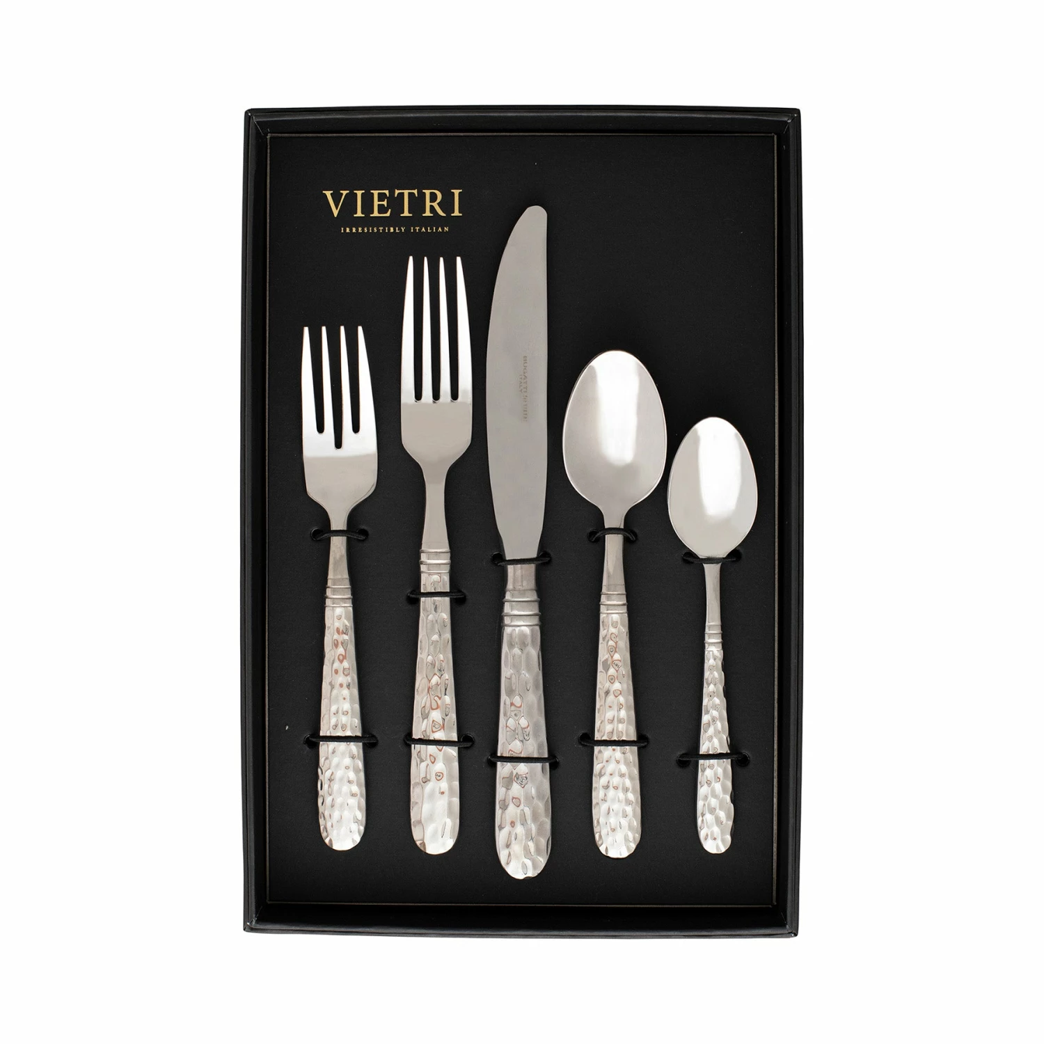 Durable and detailed, each Martellato 5-Piece Flatware Place Setting (Set of 4) is handforged by Italian artisans. The collection has a satisfying weight in the hand and is made of 18/10 stainless steel.
