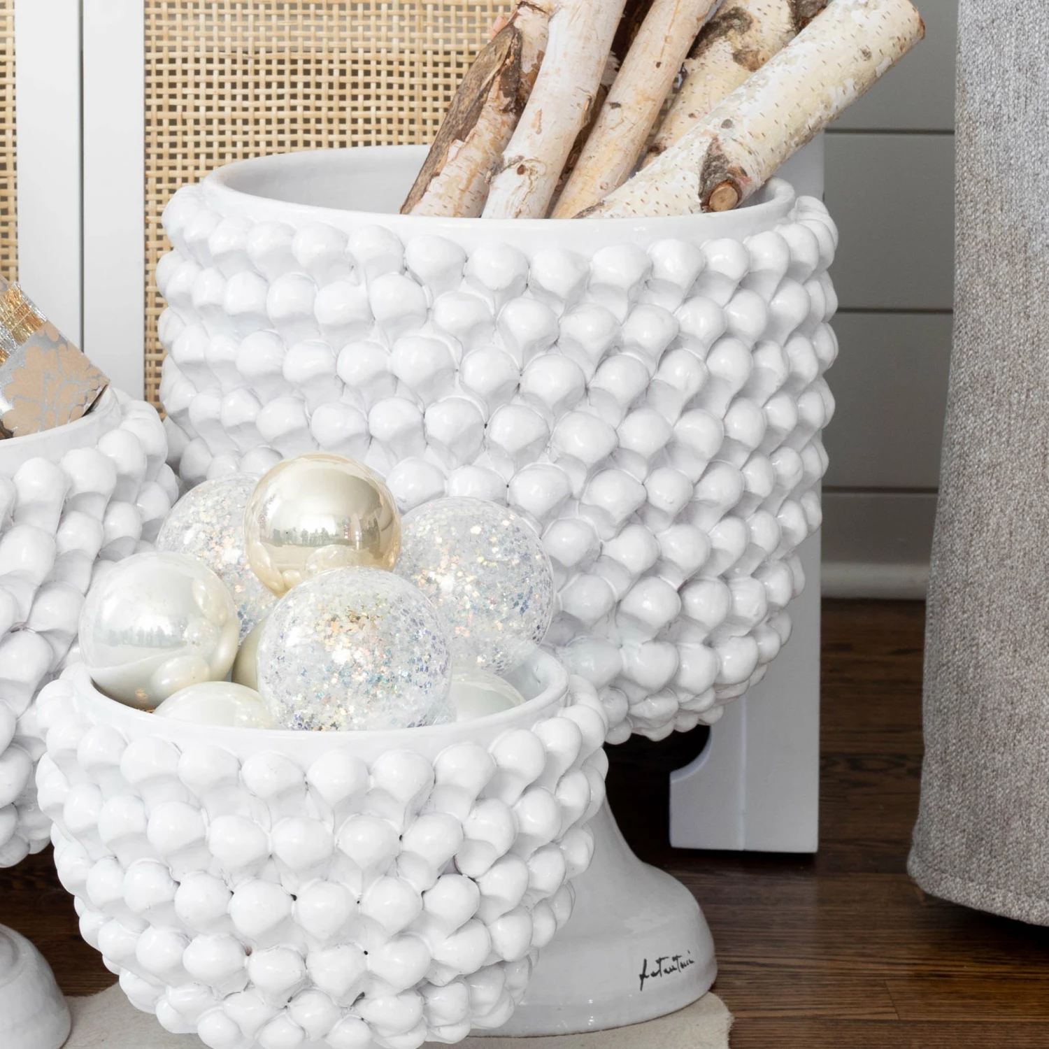 Pinecone, la pigna, is an ancient symbol signifying abundance and harmony, and is often used to welcome a new baby, celebrate newlyweds, or as a housewarming gift. The Sicilian tradition is felt so deeply that the ceramic pinecone is present in almost all homes: on the pillars at the entrance, on the balconies, or inside the rooms signifying a good omen.