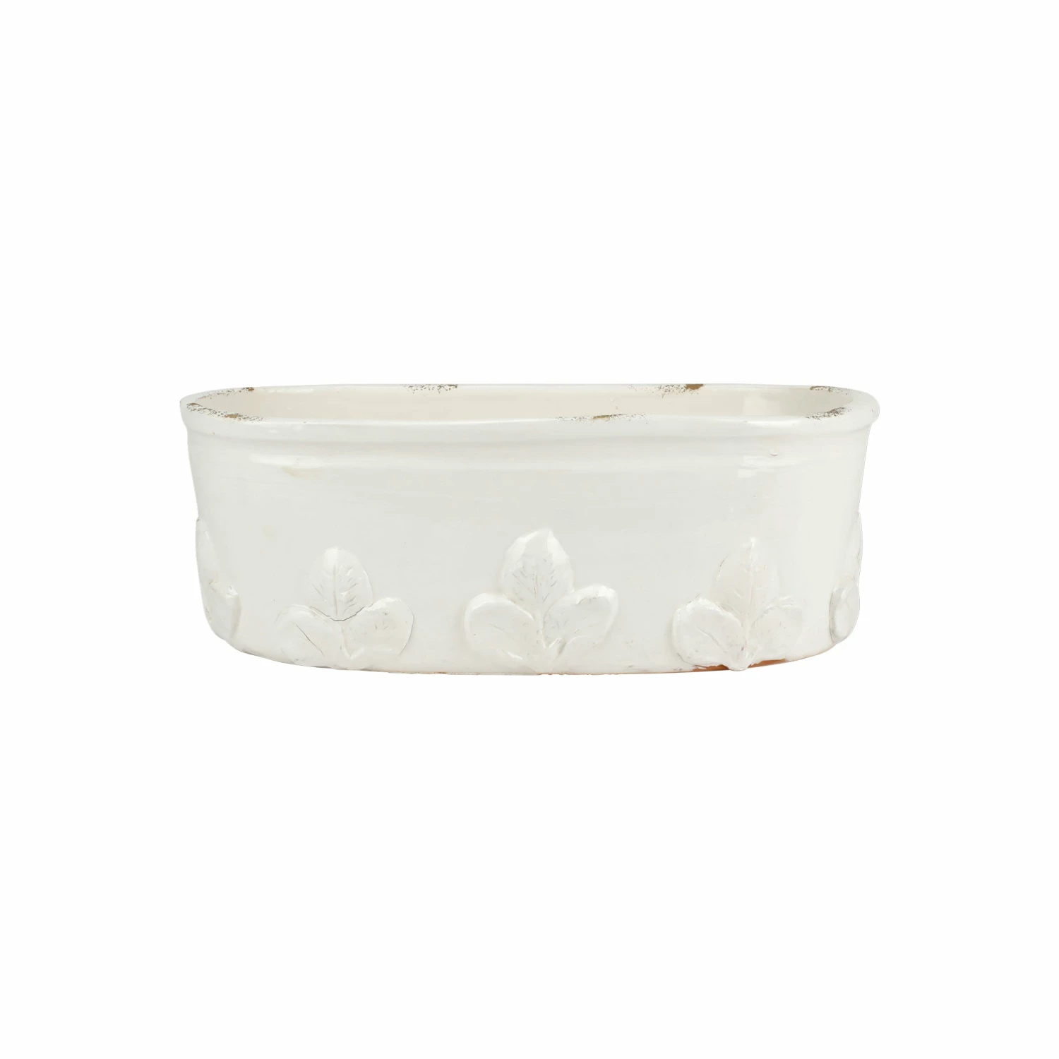 The Rustic Garden Linen Basil Oval Planter is handsculpted in Italy, and is a beautiful way to bring Italian style into your home through small accents.