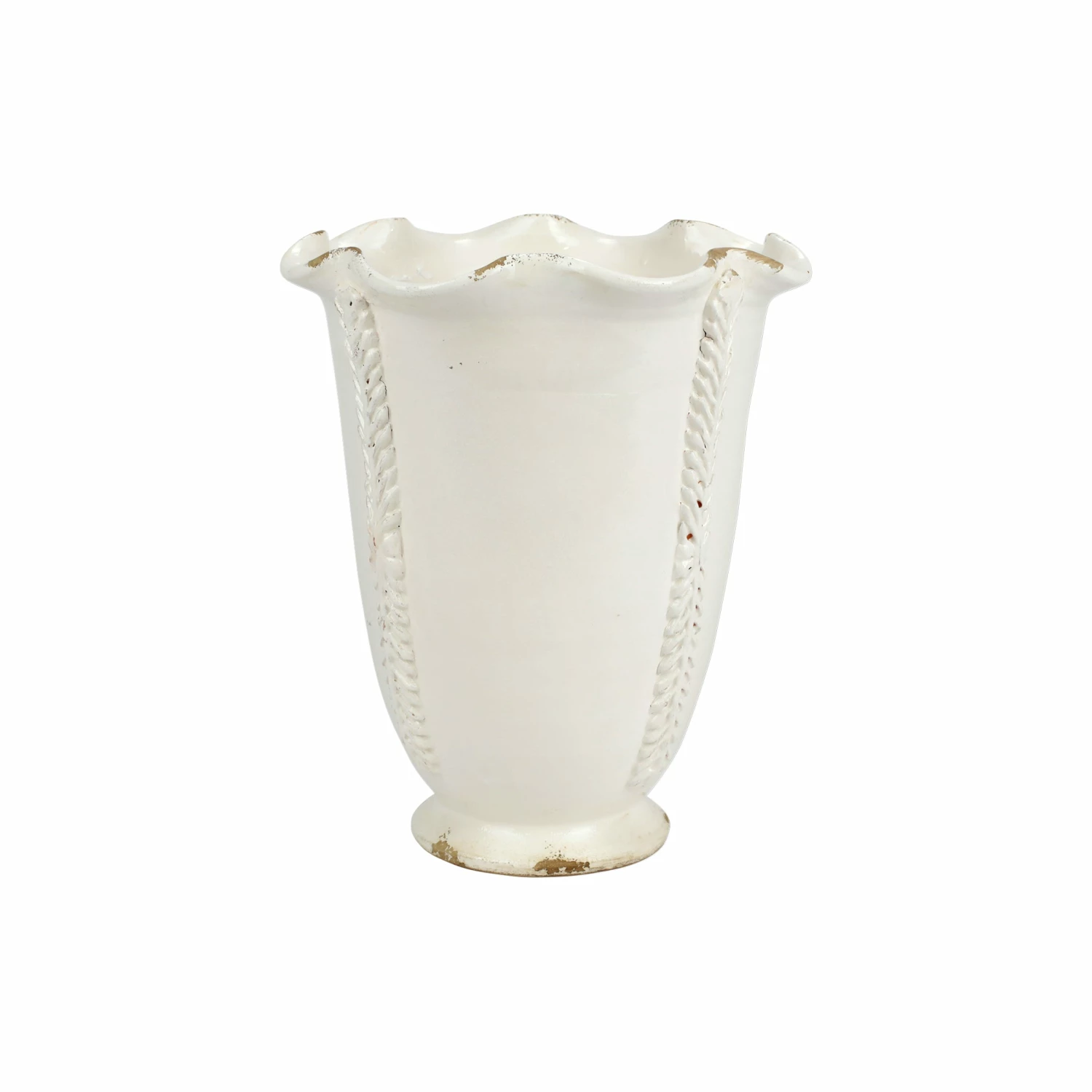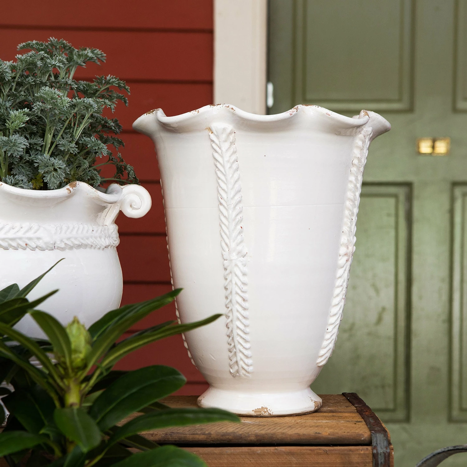 The Rustic Garden Linen Tall Planter with Vines is handsculpted in Italy, and is a beautiful way to bring Italian style into your home through small accents.