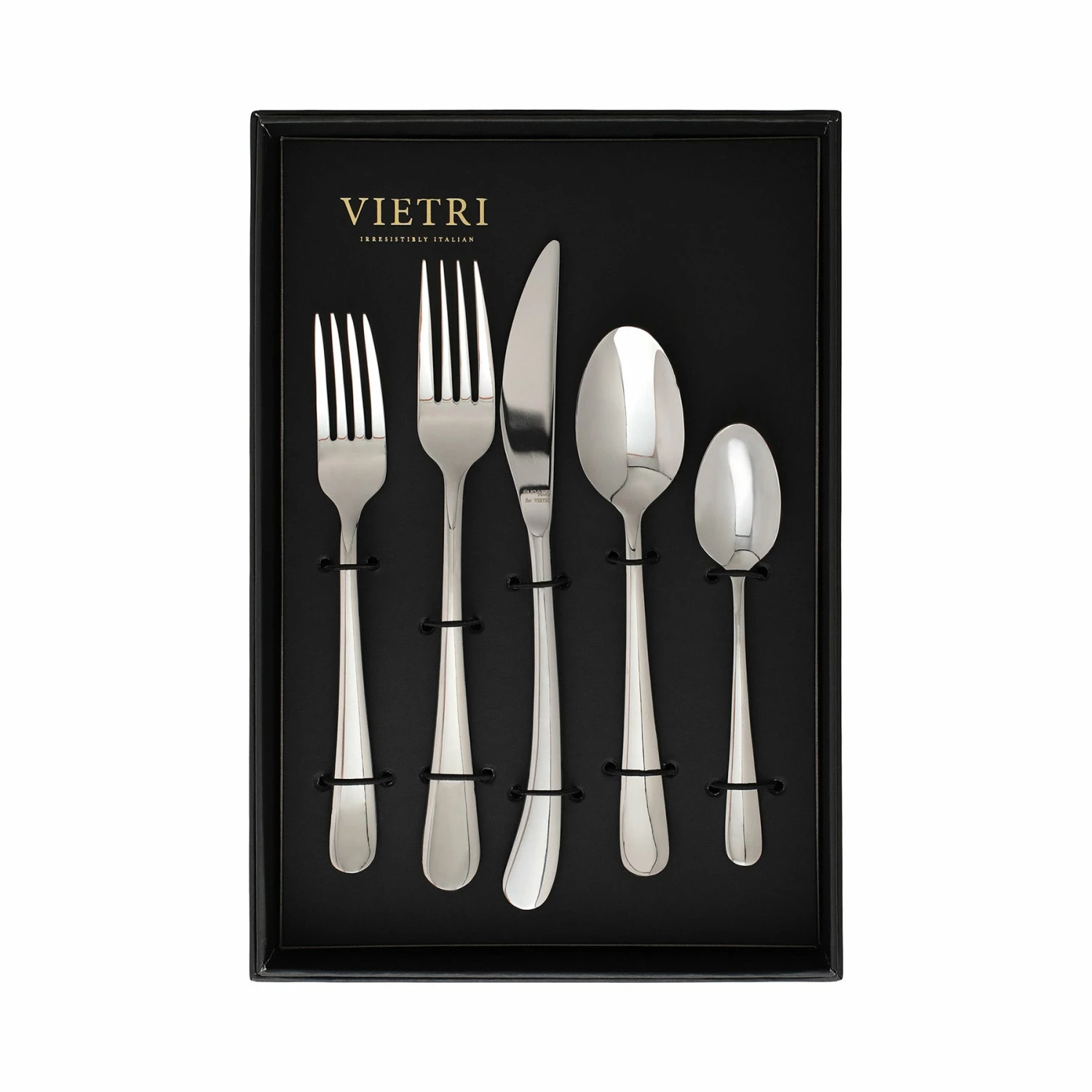 Soft, elegant lines grace each piece of the Settimocielo Five-Piece Place Setting. Translated “seventh heaven,” an emphasis on balance and comfort is prevalent with this design. The knife is hollow-handled with a forged blade for cutting precision.