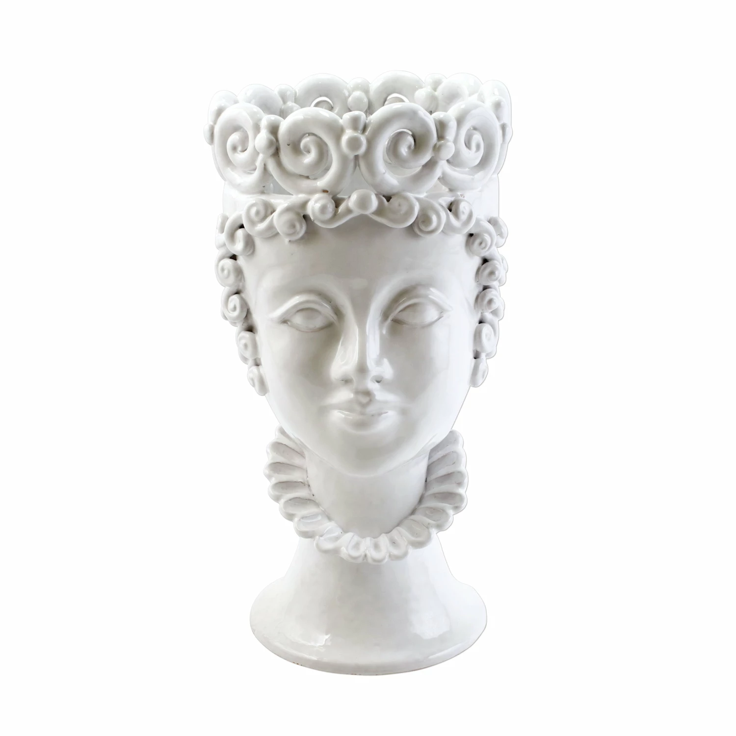 The Sicilian Heads White Large Queen Head is a tribute to the ceramic heads you will find adorning doorsteps, porches, and balconies in Sicily dating back generations of tradition.