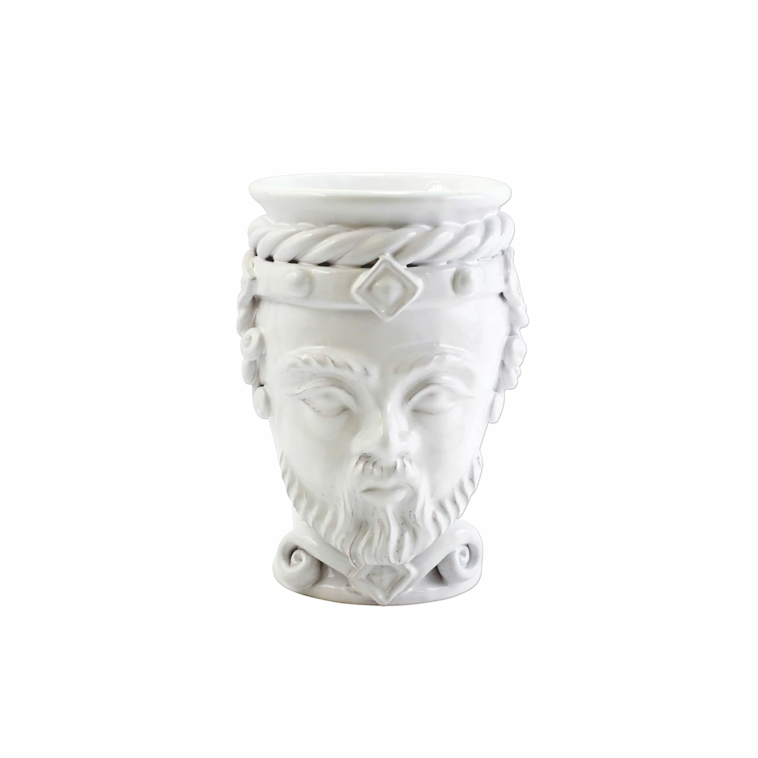 The Sicilian Heads White Small King Head is a tribute to the ceramic heads you will find adorning doorsteps, porches, and balconies in Sicily dating back generations of tradition.